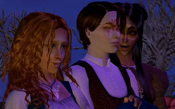 I was trying to strike up a naturalistic lighting that was bright but not so much so that I lost any detail or object structure. Likewise, I didn't want dramatic shadows. It's not always an easy balance to achieve in the Sims. Here, the lighting was coming from above, below and in front (a spotlight beam). It gets pretty purplish in places but other than that, I thought it was fairly successful.